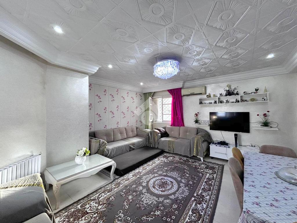 Maison plain-pied bâtie sur un terrain de 245 m² idéalement située à Riadh 5 dans un quartier calme à proximité immédiate de la mosquée El Radhouane et de l’école Abou Kacem Chabbi.